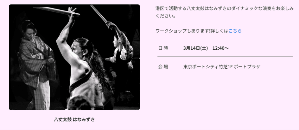 3月14日(土)、海風が吹き抜ける竹芝のステージで、私たちは八丈太鼓を響かせます。